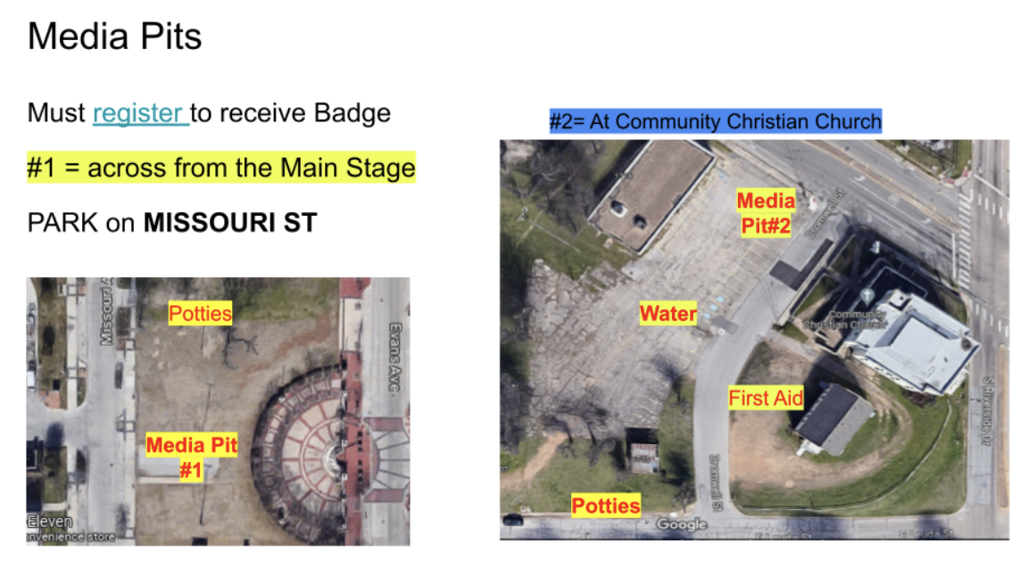 Media check-in will be located at Rosedale and Missouri Ave, where you will receive a media badge. You are required to submit for registration - please register here .