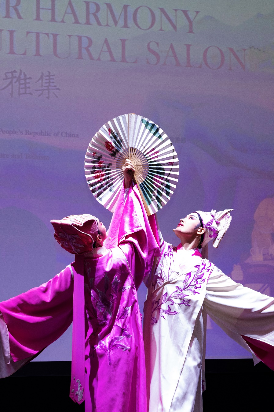 The event commenced with a enchanting water sleeve dance. After the speeches by the guests, the Zhejiang Xiaobaihua Yue Opera Troupe performed an excerpt from the Yue opera "The Butterfly Lovers - The Eighteen Miles Farewell," which left a lingering impression on the audience. A promotional video showcased the unique cultural and tourism features of Zhejiang, further captivating the audience. The event reached another peak with a mesmerizing performance of the Zhejiang folk song "Tea Picking Dance" by four talented artists using the instruments of zhongruan, flute, erhu, and guitar, offering a glimpse of the enchanting early spring scenery of Jiangnan and celebrating the artistry and lives of tea farmers.