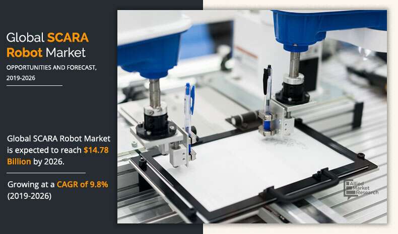 OREGAON, PORTLAND, UNITED STATES, June 22, 2023/EINPresswire.com/ -- As per the report published by Allied Market Research Titled “SCARA Robot Market by Payload Capacity (Up to 5.0 kg, 5.01 to 15.0 kg, and More than 15.0 kg), Application (Material Handling, Assembling and dissembling, Wielding & Soldering, Dispensing, Processing, and Others), and Industry Vertical (Electrical & Electronics, Automotive, Food & Beverages, Pharmaceuticals, Metal & Machinery, and Others): Global Opportunity Analysis and Industry Forecast, 2019–2026”
