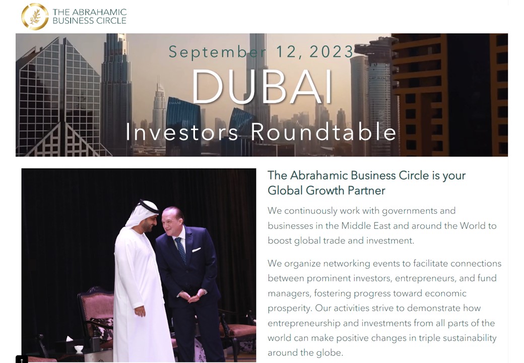 The Abrahamic Business Announces Upcoming Investors Roundtable on September 12, 2023, in Dubai