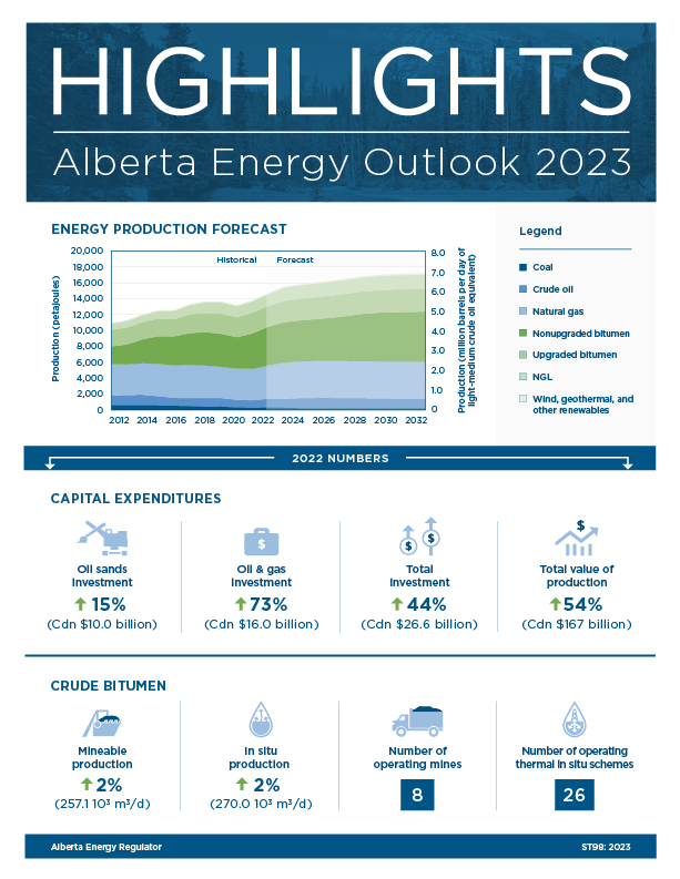 The 2023 Alberta Energy Outlook report is a credible, unbiased, and comprehensive resource that governments, industry, and other key stakeholders may use for planning or making decisions about Alberta’s diverse energy sector.