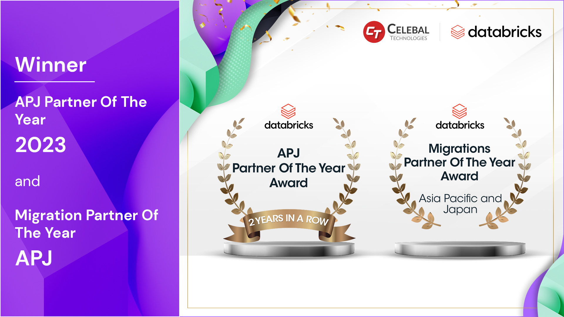 Celebal Technologies has emerged victorious with two Databricks awards: APJ Partner of the Year Award and the Migrations Partner of the Year - APJ Award.