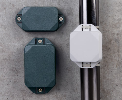 MINI-DATA-BOX is available in four plan sizes (1.57” x 1.57”, 1.96” x 1.96”, 2.36" x 1.57”, 2.75" x 1.96”) and two heights (0.59” and 0.79”). IP 65 sealing is optional. The enclosures are molded from UV-stable, flame-resistant ASA+PC-FR (UL 94 V-0). There are two standard colors, traffic white (RAL 9016) and anthracite gray (RAL 7016), with custom colors available on request. Accessories include IP 65 seals.