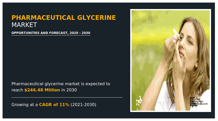 PORTLAND, OREGON, UNITED STATES, June 28, 2023/EINPresswire.com/ -- Allied Market Research published a report, titled, "Pharmaceutical Glycerine Market by Application (Excipient, Glycerin As Care Product): Global Opportunity Analysis and Industry Forecast, 2020-2030." According to the report, the global ๐๐ก๐๐ซ๐ฆ๐๐๐๐ฎ๐ญ๐ข๐๐๐ฅ ๐๐ฅ๐ฒ๐๐๐ซ๐ข๐ง๐ ๐๐๐ซ๐ค๐๐ญ ๐๐ข๐ณ๐ ๐ฐ๐๐ฌ ๐๐๐ฅ๐ฎ๐๐ ๐๐ญ ๐๐๐ ๐๐.๐๐ ๐ฆ๐ข๐ฅ๐ฅ๐ข๐จ๐ง ๐ข๐ง ๐๐๐๐, ๐๐ง๐ ๐ข๐ฌ ๐๐ซ๐จ๐ฃ๐๐๐ญ๐๐ ๐ญ๐จ ๐๐๐ซ๐ง๐๐ซ ๐๐๐ ๐๐๐.๐๐ ๐ฆ๐ข๐ฅ๐ฅ๐ข๐จ๐ง ๐๐ฒ ๐๐๐๐, ๐ซ๐๐ ๐ข๐ฌ๐ญ๐๐ซ๐ข๐ง๐ ๐ ๐๐๐๐ ๐๐.๐% ๐๐ซ๐จ๐ฆ ๐๐๐๐ ๐ญ๐จ ๐๐๐๐