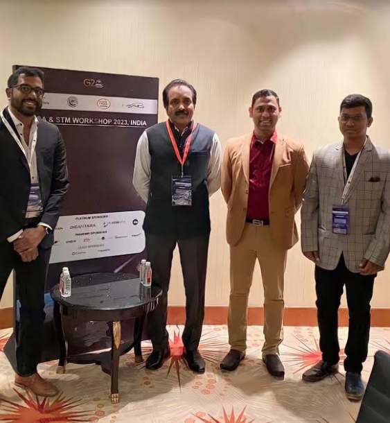 Members of the Blue Eye Soft team are pictured with Sreedhara Somanath (second from left), chairman of the Indian Space Research Organisation (ISRO), at the Space Situational Awareness (SSA) - Space Traffic Management (STM) conference in Bangalore earlier this year.