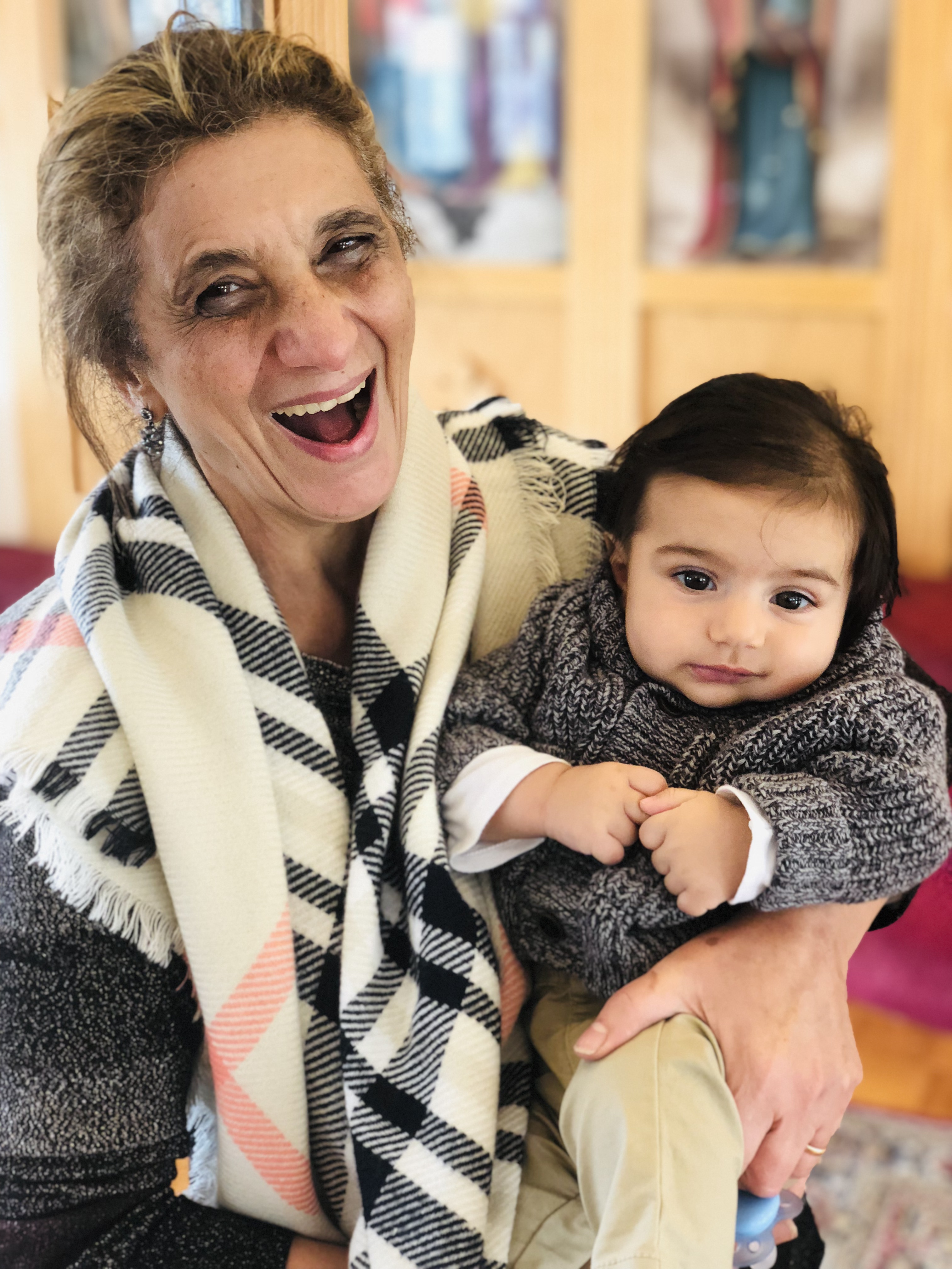 Dr. Dalal Akoury, a passionate mother and grandmother, holds her grandson close as she shares her expertise on breastfeeding health. Her dedication to teaching and empowering families shines through, inspiring a nurturing bond between generations.