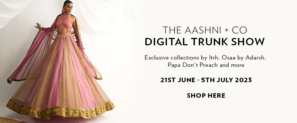To all fashion aficionados, don’t wait up; shop at the Aashni & Co’s Digital Trunk Show of the season, starting from 21st June to 5th July 2023, at the multi-designer store, Aashni & Co.