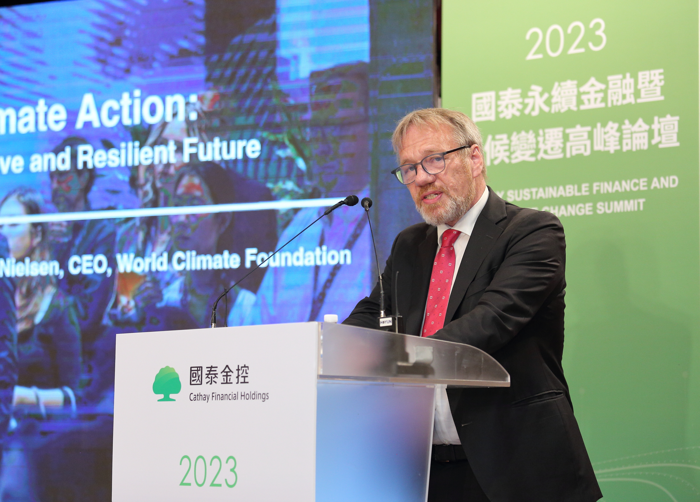 The summit commenced with an opening speech by Chairman Hong-Tu Tsai of Cathay FHC and a keynote address by Chairman Tien-Mu Huang of the Financial Supervisory Commission. A significant highlight of the event was the exclusive presence of Jens Nielsen, CEO of WCF, who delivered the first-ever speech in Asia, providing valuable insights into the dynamics of international climate summits.