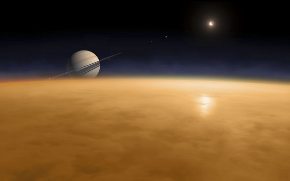 "Titan, the largest moon of Saturn and the second largest in the Solar System, possesses an abundance of all of the elements necessary to support life, including atmospheric nitrogen and methane, liquid methane, liquid water and ammonia, and atmospheric pressure one and a half times that of Earth."