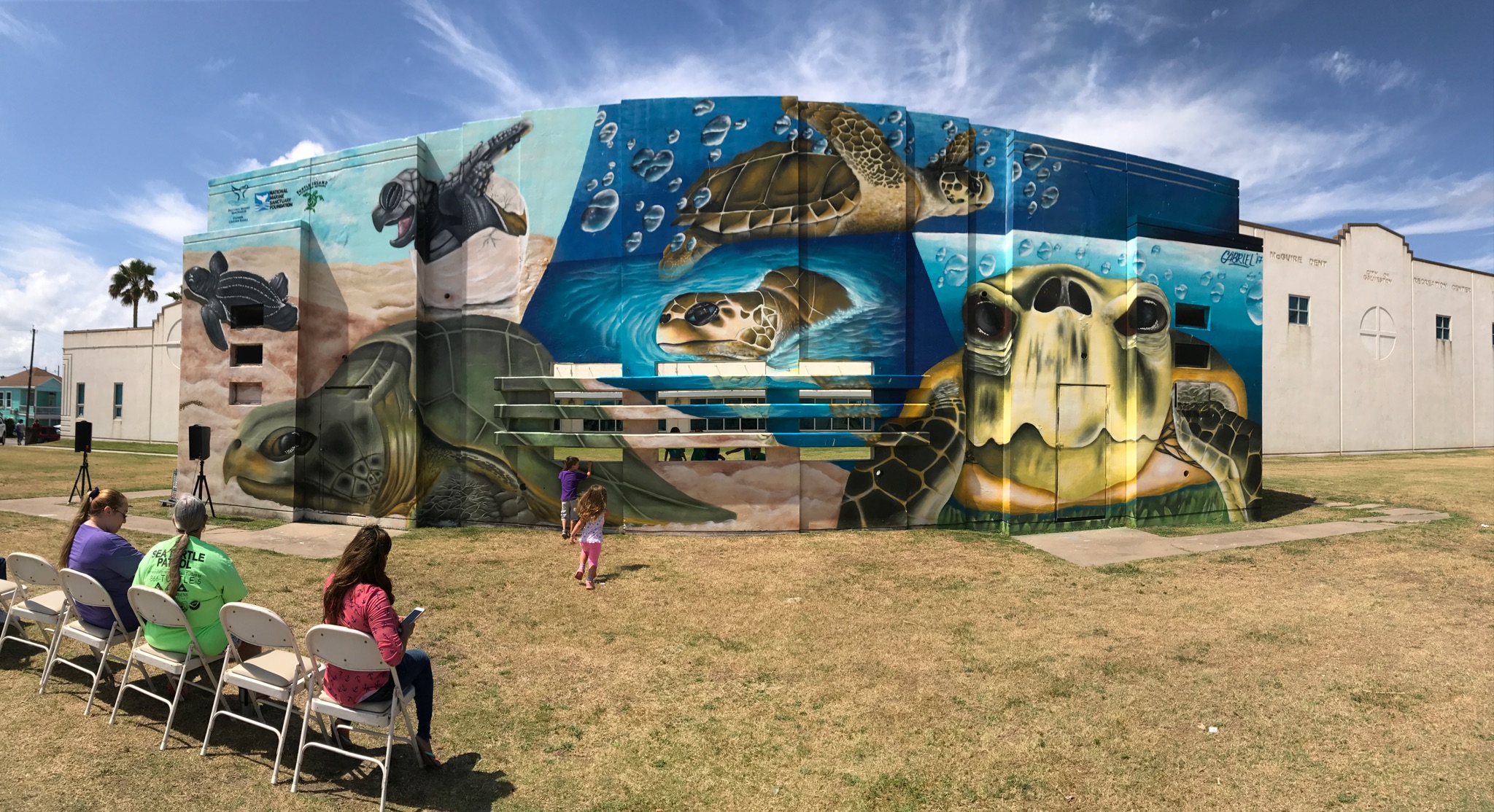 Galveston, TX, July 10, 2023 (GLOBE NEWSWIRE) -- Turtle Island Restoration Network proudly displays The Mural at Menard Park in partnership with Flower Garden Banks National Marine Sanctuary (FGBNMS) and the National Marine Sanctuary Foundation. Located at a prominent spot on the Seawall, this stunning mural showcases the five species of sea turtles found in the Gulf of Mexico.