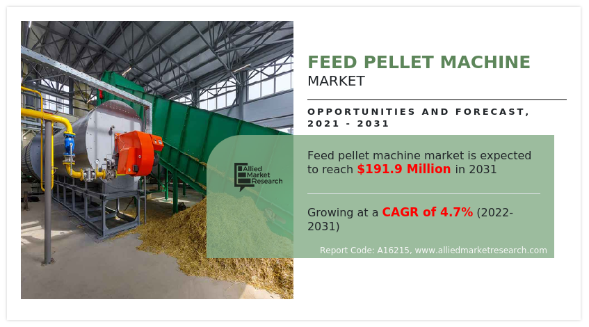 PORTLAND, UNITED STATES, UNITED STATES, July 11, 2023/EINPresswire.com/ -- According to a new report published by Allied Market Research, titled, "Feed Pallet Machine Market," The feed pellet machine market size was valued at $120.20 million in 2021, and is estimated to reach $191.9 million by 2031, growing at a CAGR of 4.7% from 2022 to 2031.