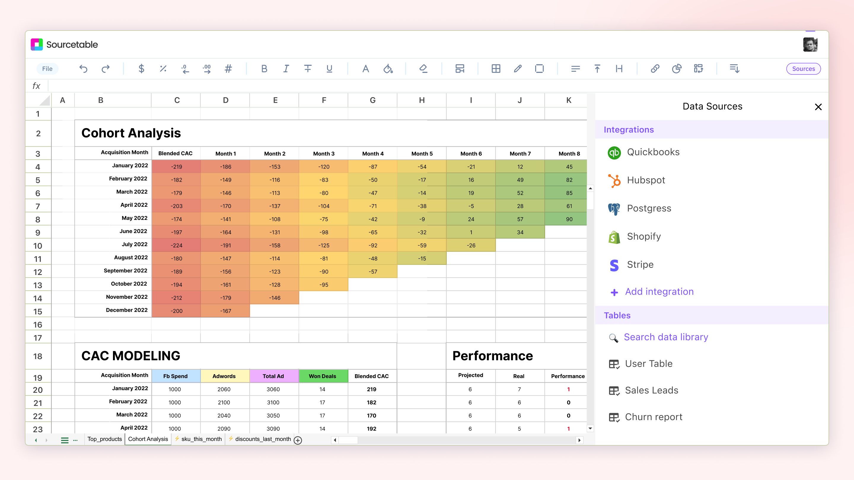 Sourcetable is the world’s first spreadsheet to combine data warehousing, live data-sync, and regular spreadsheet features that users expect from Excel and Google Sheets, including charting, pivots, spreadsheet-formulas, cell-based modeling, and real-time document collaboration.