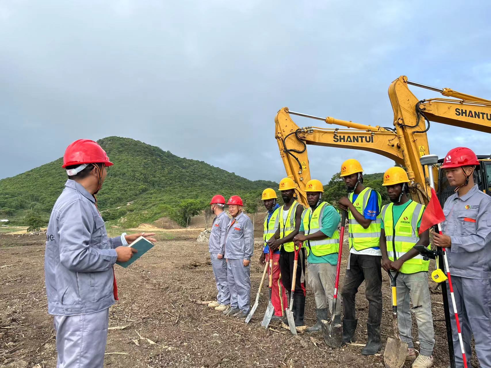 A Chinese manager is giving the instruction to a local team in front of the China-imported machinery.