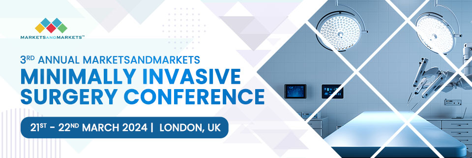 LONDON, UNITED KINGDOM, July 13, 2023/EINPresswire.com/ -- MarketsandMarkets is delighted to announce the 3rd Annual Minimally Invasive Surgery Conference, scheduled to take place on 21st - 22nd March 2024 in London, UK. The conference will bring together industry experts, healthcare professionals, researchers, and key decision-makers to explore the latest advancements and trends in the field of minimally invasive surgery.Enquire Now: https://events.marketsandmarkets.com/minimally-invasive-surgery-conference/enquiry