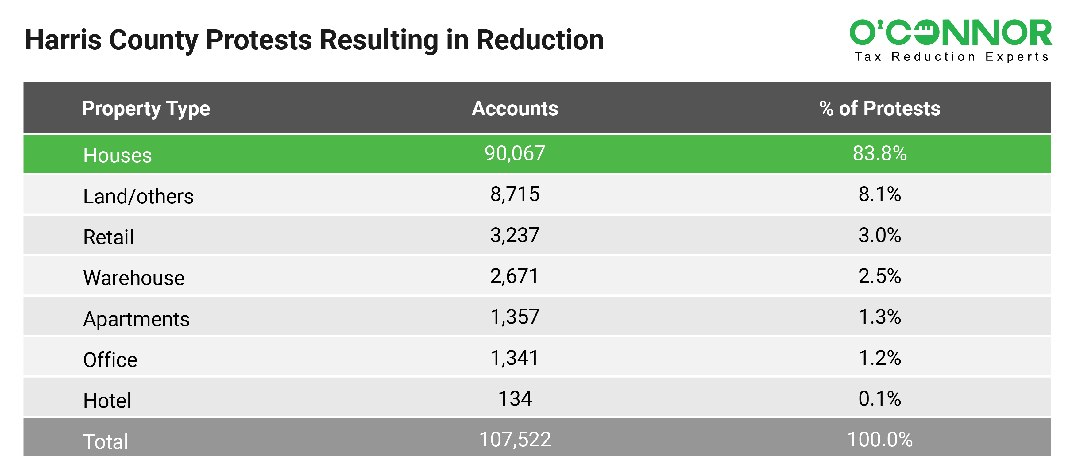 Property owners are encouraged to scrutinize their annual property tax assessments and appeal annually. Well over half of property tax protests in Harris County are successful in a typical year.