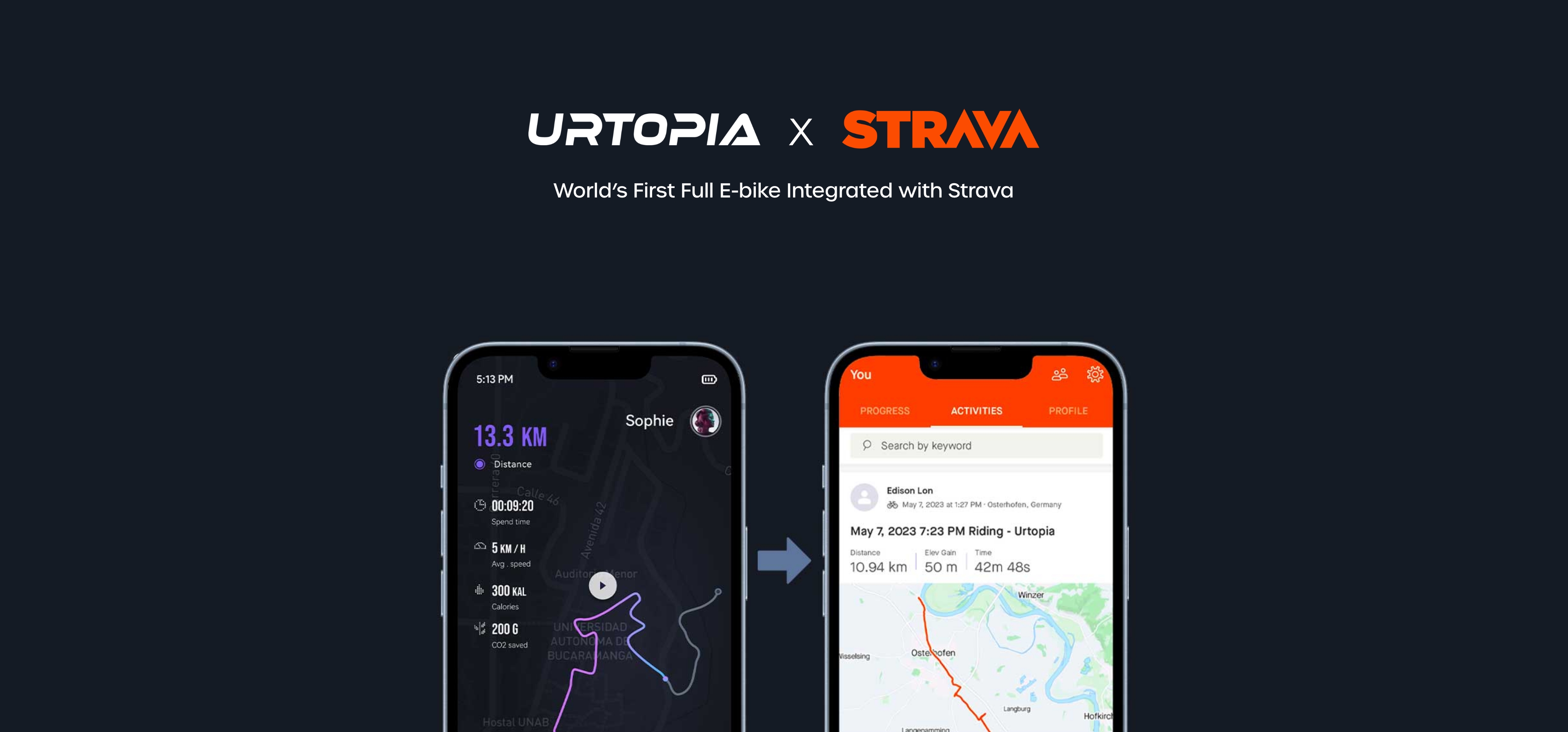 BERLIN, GERMANY, July 18, 2023/EINPresswire.com/ -- Urtopia, the tech Ebike company that recently unveiled its ChatGPT integration in June, proudly announces another groundbreaking achievement today. It has become the world's first smart Ebike to offer seamless integration of the entire bike into the Strava App, following in the footsteps of the COBI App developed by Bosch motors. Urtopia once again demonstrates its commitment to technological innovation and inclusivity.This innovative feature makes it easier than ever for cyclists to share their ride data. With just a single click, Urtopia users can now effortlessly showcase their achievements, progress, and routes on one of the most popular cycling apps on the market. By combining Strava's comprehensive analytics and performance metrics with Urtopia's advanced ride-tracking capabilities, cyclists are empowered to set and achieve their goals, reaching new milestones along the way.