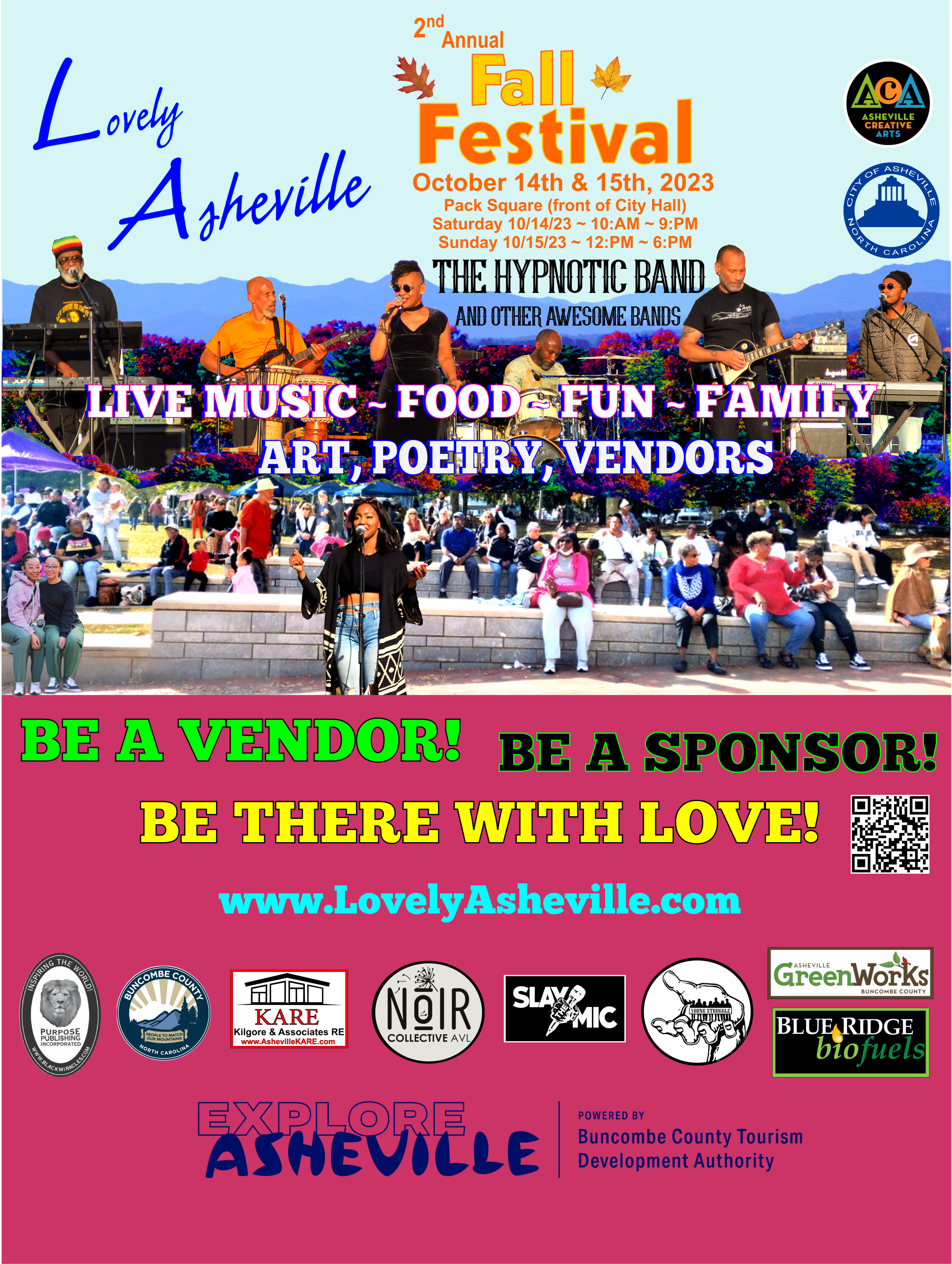 The Lovely Asheville Annual Fall Festival is filled with plans for family-friendly fun, food, entertainment, cultural activities, merchants, and informative speakers. LIVE Bands will perform family-friendly R&B, Pop, Rock, Jazz, Afro Beats, Reggae, Inspirational, and more for most of both days. Local small businesses will offer locally created foods, fashion designs, as well as arts & crafts. Vendor and Sponsorship opportunities are currently available. Visit www.lovelyasheville.com or call 828-333-4875 for more information.
