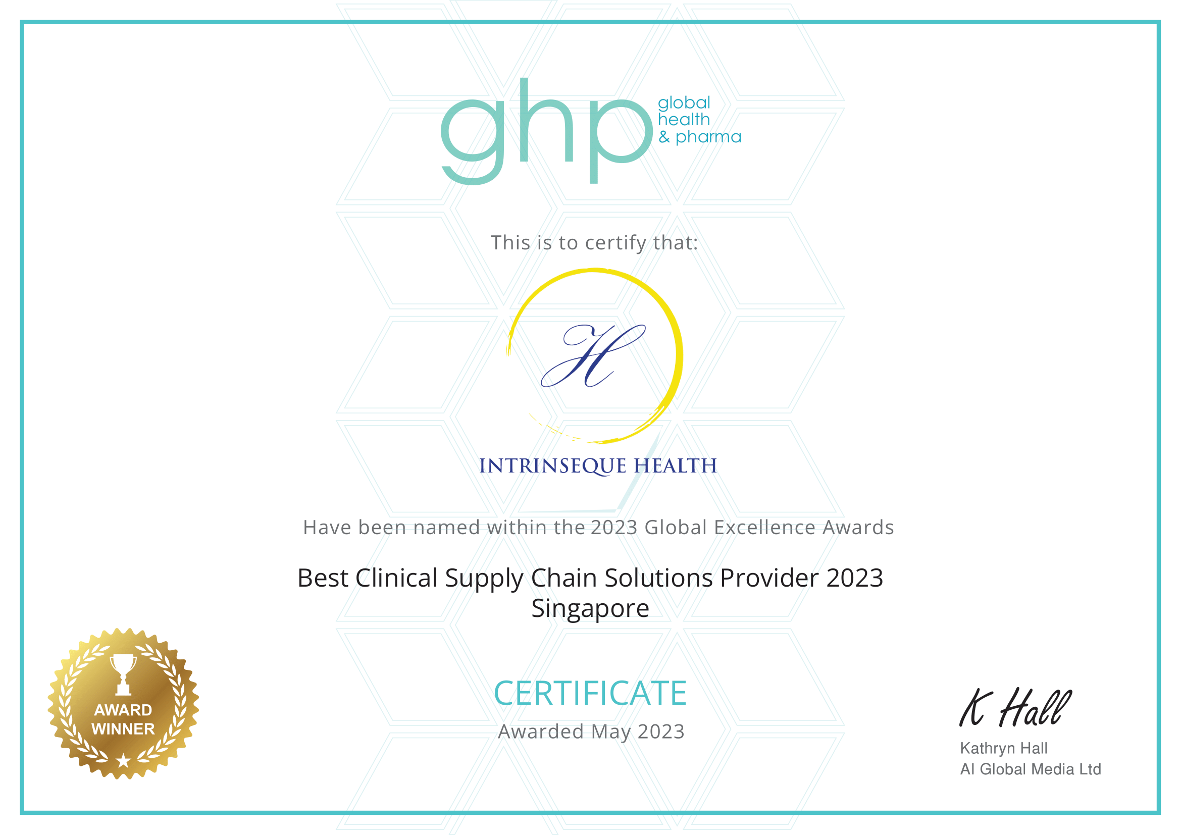 Intrinseque Health Wins Award For Best Clinical Supply Chain Solutions Provider 2023 Singapore
