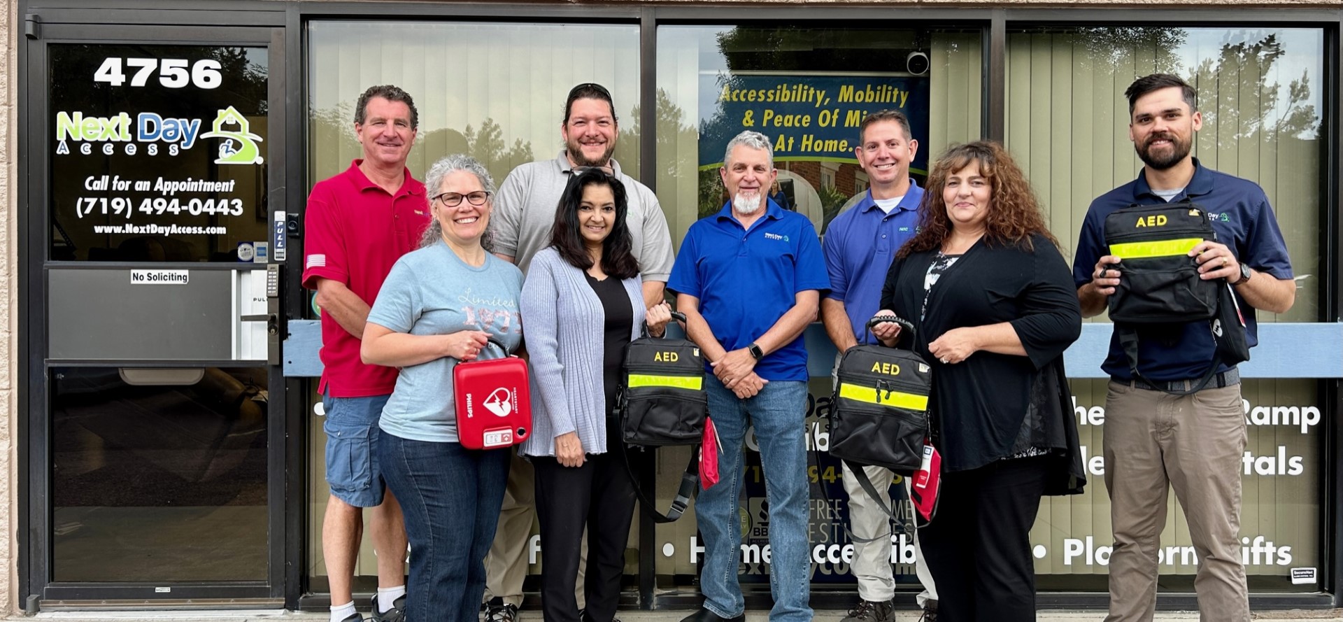 “We are in the business of helping people, specifically people with health complications,” said David Beiner, Next Day Access Colorado Springs CEO. “If we can offer another way to provide safety, we want to be able to do so. The technicians, office staff, and myself are equipped with the AEDs, whether on the road or at the office.”