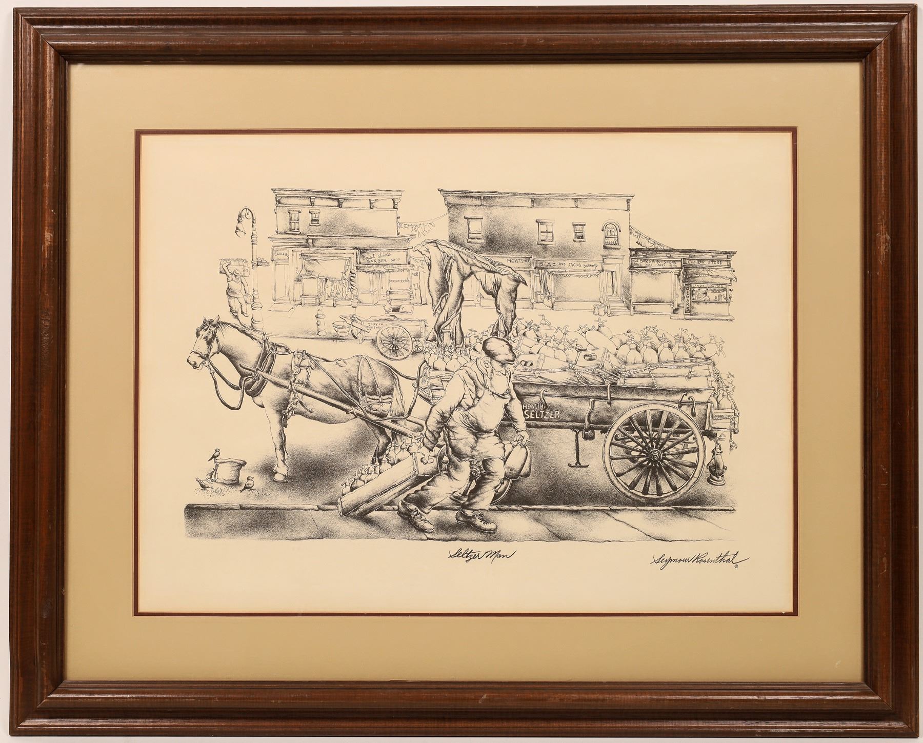 Lithograph depicting Seltzer Man, a well-known and highly collectible character by the world-famous artist Seymour Rosenthal (1921-2007), signed by Rosenthal, framed (est. $600-$800).