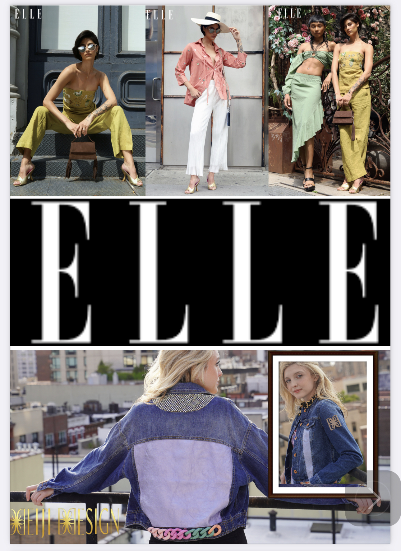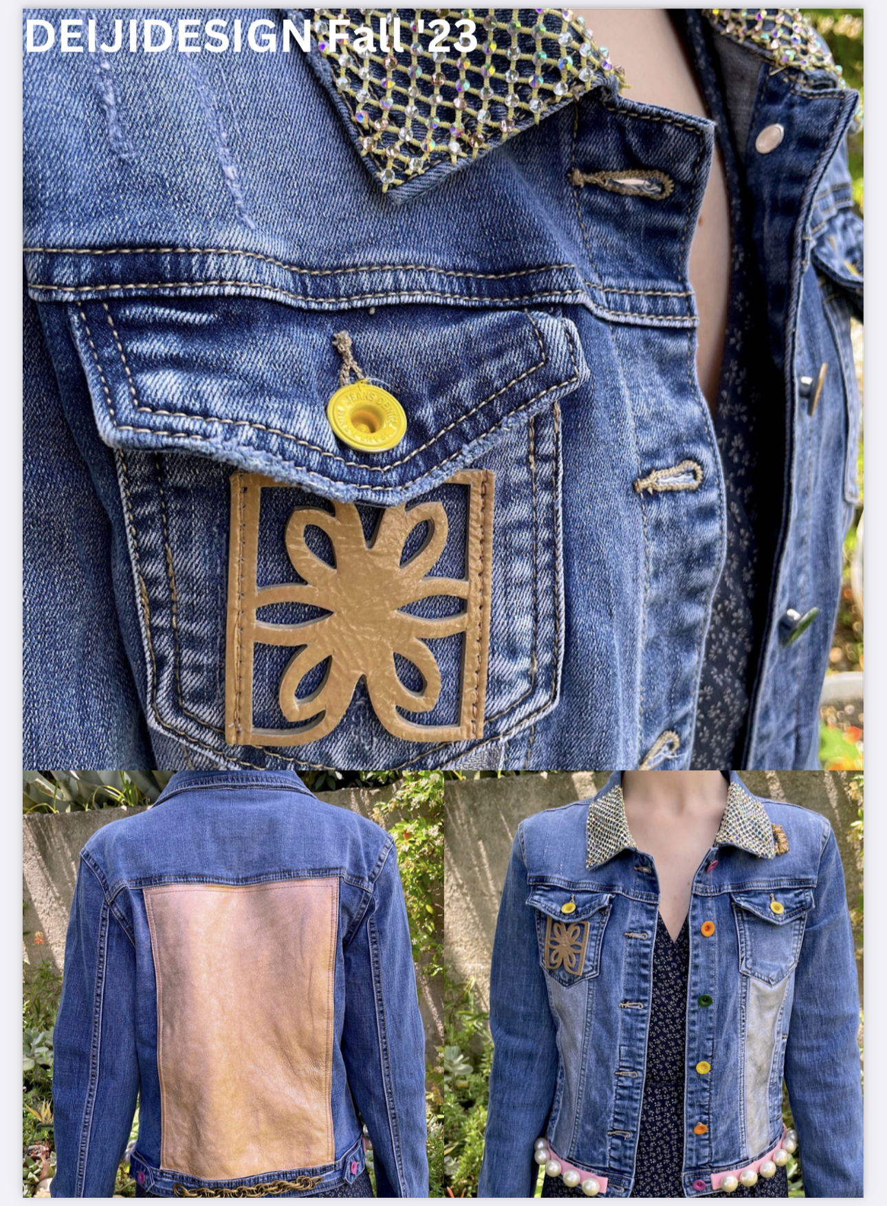 DEIJIDESIGN has received numerous accolades within the last year from fashion magazine elites including Harper’s Bazaar, LA Weekly, Shuba Magazine, LadyGunn Magazine, Madame Fiagro, Solstice Magazine, Fashion Mannuscript, and Glamour Magazine for the release of their first apparel at February 2023 New York Fashion Week–a beautiful custom denim jacket featuring a colorful bejeweled DEIJIDESIGN emblem set in golden placque.