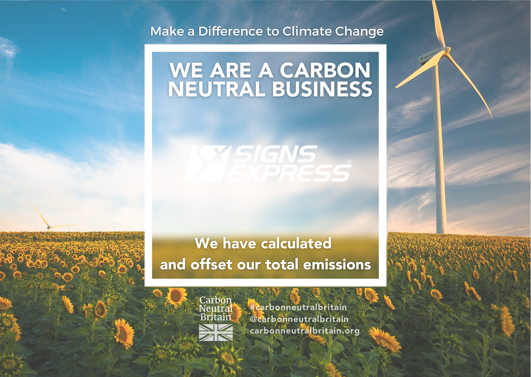 Working in collaboration with Carbon Neutral Britain, Signs Express gathered data across a 12-month period, measuring carbon emissions from each centre’s operating activities, production machinery and power outputs, along with the floorspace, to determine a clear picture of their carbon footprint at each of its near-60 centres.