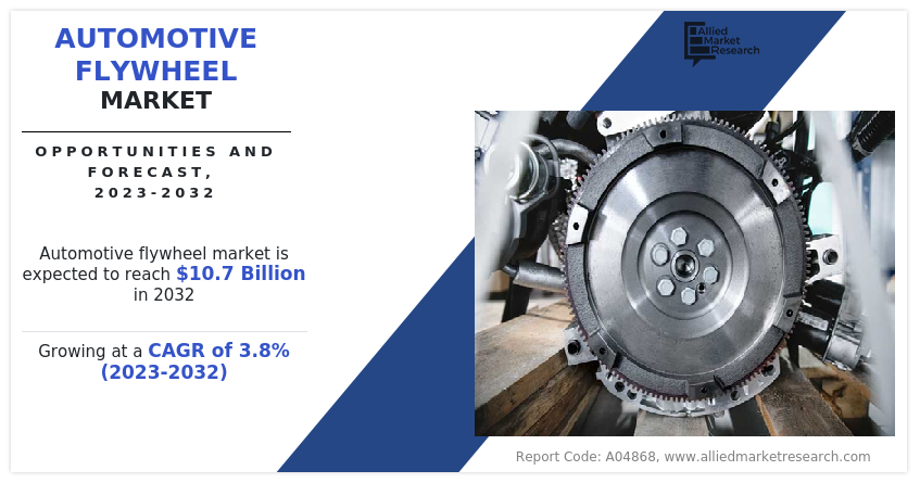 Allied Market Research published a report, titled, โAutomotive Flywheel Market by Type (Single Mass and Dual Mass), Transmission Type (Manual, Semi-automatic and Automatic, and CVT), Vehicle Type (Passenger Vehicle and Commercial Vehicle), and Distribution Channel (OEM and Aftermarket): Global Opportunity Analysis and Industry Forecast, 2022-2032". According to the report, the global automotive flywheel market generated $7.4 billion in 2022, and is anticipated to generate $10.7 billion by 2032, witnessing a CAGR of 3.8% from 2023 to 2032.