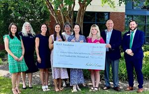 Holding check from left to right are Ashley Grim, DVSS board member; Jo Anne Sanford, SECU Foundation board member; Lauren Daley Bryant, DVSS executive director; Kaitlynn Harrison, DVSS representative; and Dustin Adams, SECU senior vice president with SECU and SECU Foundation representatives.