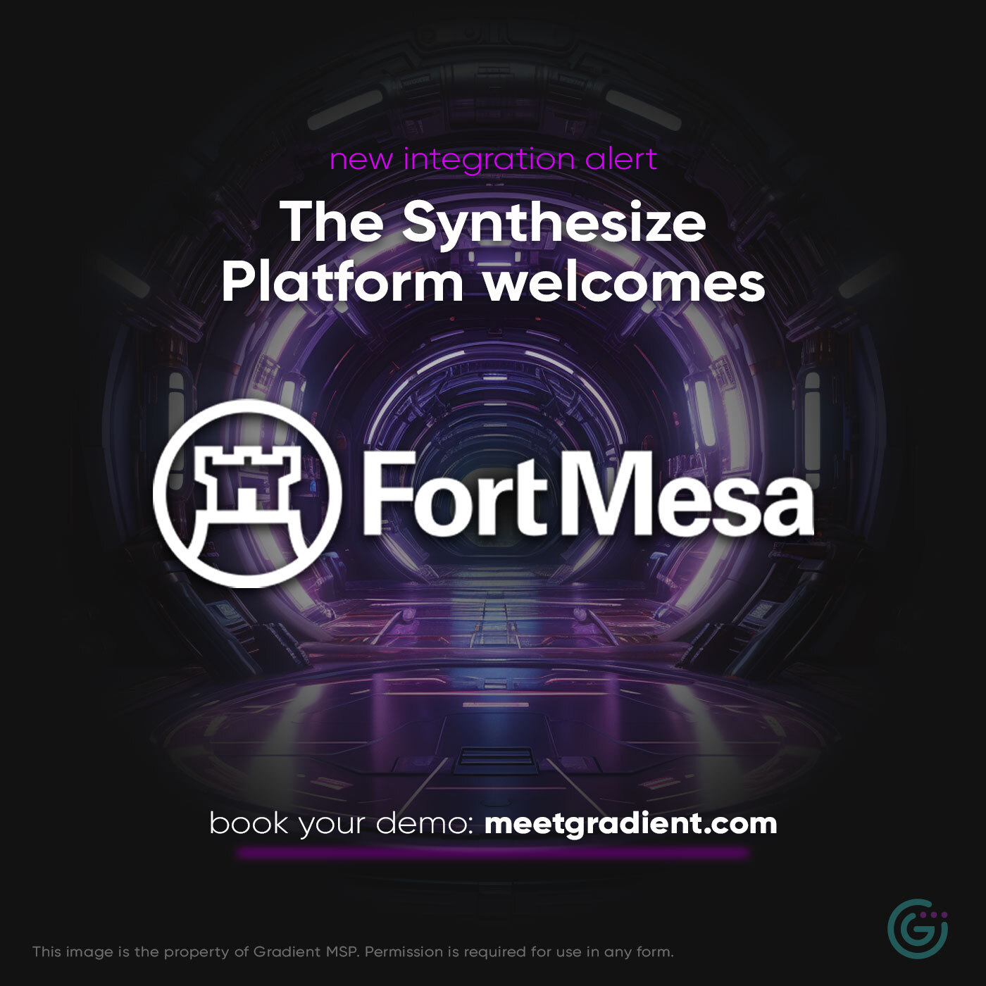 “Gradient is thrilled to welcome FortMesa to our Synthesize integration network,” says Colin Knox, CEO and Co-founder of Gradient MSP. “With this seamless integration, FortMesa partners can now streamline and expedite their billing reconciliation processes and make sure they never miss an alert, empowering them to prioritize the customer experience and scale their business.”