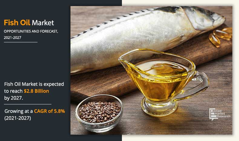 PORTLAND, OREGON, UNITED STATES, July 31, 2023/EINPresswire.com/ -- Allied Market Research recently published a report, titled, "Fish Oil Market by Species (Anchovy, Mackerel, Sardines, Cod, Herring, Menhaden and Others), and (Aquaculture, Animal Nutrition & Pet Food, Pharmaceuticals, Supplements & Functional Food and Others): Global Opportunity Analysis and Industry Forecast, 2021–2027".