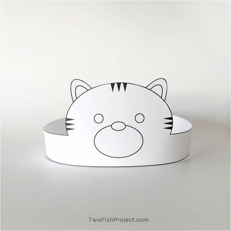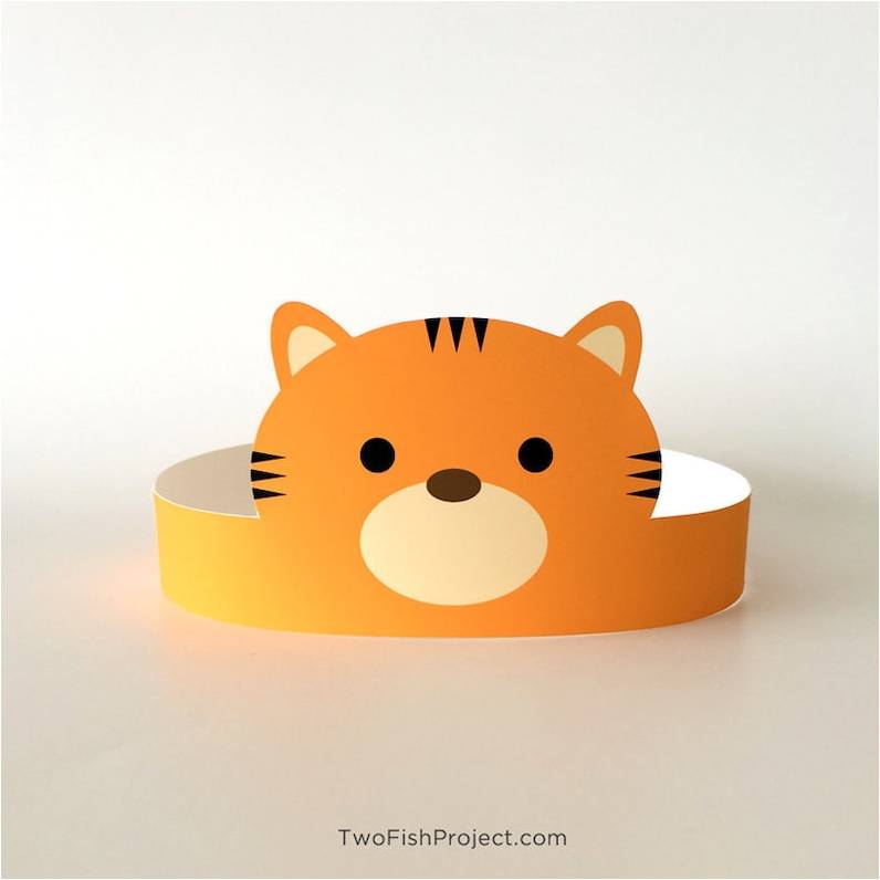 Cute tiger party hat printable from TwoFish are fun as tiger costumes for parties, pretend play and engaging educational lessons about tigers or jungle animals.