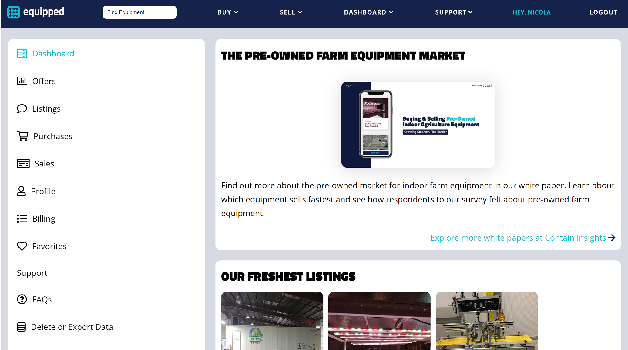 Alongside Equipped’s platform upgrade, Contain Inc., Equipped owner and Indoor agriculture fintech specialist, released its latest white paper “Buying & Selling Pre-Owned Indoor Agriculture Equipment'' exploring the landscape and benefits of pre-owned equipment in the industry, considerations when buying and selling, and how to navigate the Equipped platform. This can be downloaded from user’s dashboards at Equipped.farm, or on Contain’s data platform at insights.contain.ag.