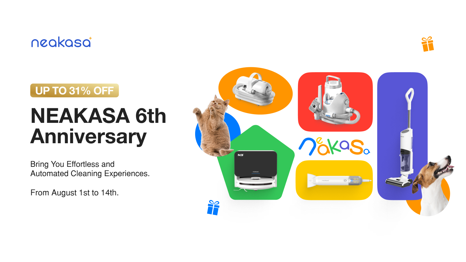 LOS ANGELES, CA, USA, August 1, 2023/EINPresswire.com/ -- Neakasa, the leading provider of smart cleaning solutions, is thrilled to announce its 6th Anniversary, marking six years of innovation, excellence, and dedication in simplifying and elevating lives and homes through cutting-edge technology. To express gratitude to its loyal customer base, Neakasa is offering incredible discounts of up to 31% on its premium range of products from August 1st to 14th.