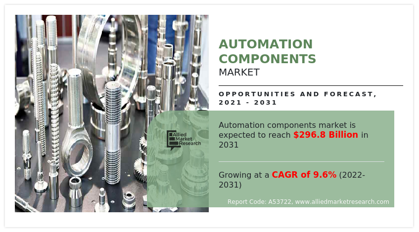 PORTLAND, UNITED STATES, UNITED STATES, August 2, 2023/EINPresswire.com/ -- According to a new report published by Allied Market Research, titled, “Automation Components Market," The automation components market size was valued at $116.7 billion in 2021, and is estimated to reach $296.8 billion by 2031, growing at a CAGR of 9.6% from 2022 to 2031.