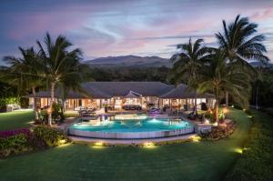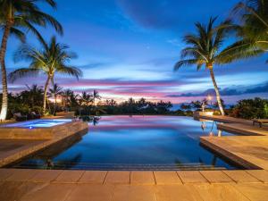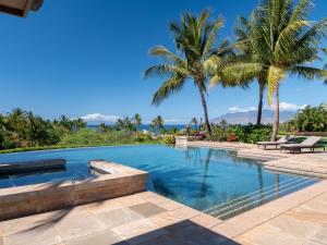 Outside, a resort-style pool invites relaxation under the Hawaiian sun. This outdoor space provides an idyllic setting for days spent enjoying the tropical climate and views. Palauea Bay's white sandy beach is just across the street from this estate. With such close proximity to one of Hawaii’s most beautiful beaches, residents can indulge in oceanside activities or enjoy walks along its shores.