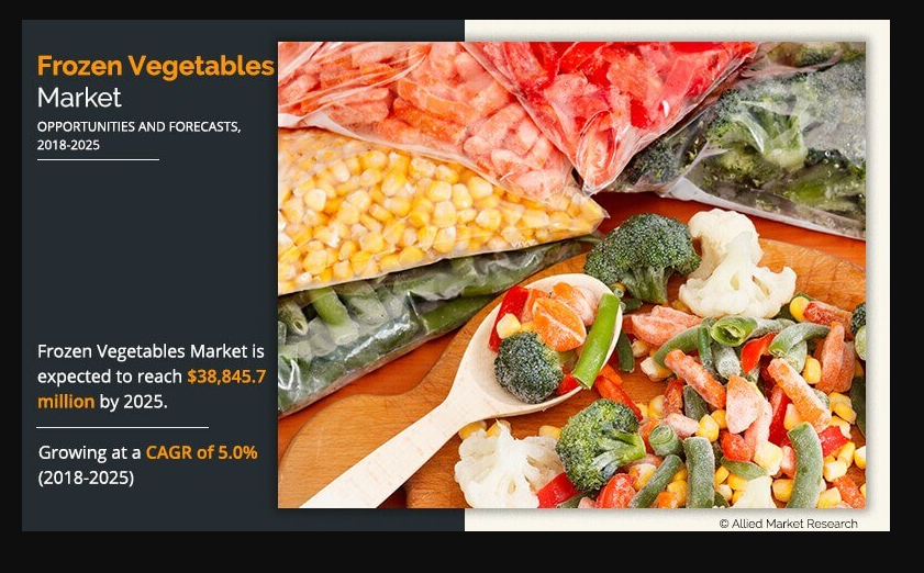 PORTLAND, OR, US, August 7, 2023/EINPresswire.com/ -- According to a new report published by Allied Market Research, titled, "Frozen Vegetables Market by Product, End User, and Distribution Channel: Global Opportunity Analysis and Industry Forecast, 2017-2023", the global frozen vegetables market was valued at $25,179 million in 2016, and is projected to reach $34,973 million by 2023, registering a CAGR of 4.7% from 2017 to 2023. In 2016, the frozen corn segment accounted for approximately one-third share of the global market, in terms of both value and volume.