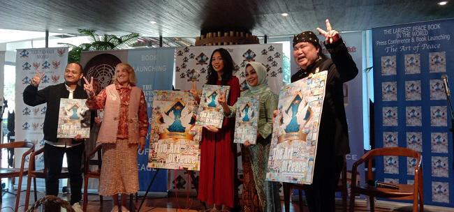 Two Indonesian Senators, Senator Dra. Ir. Hj. Eni Sumarni, M.Kes dan Senator H. Fachrul Razi, S.I.P., M.I.P. launched the phenomenal book together with Princess Cheryl Halpern, Prince Dr. Damien Dematra and Princess Natasha Dematra in Jakarta. With a size of 59.4 x 84.1 cm, this book has been recognized as the largest peace themed book and is included in the Royal World Records.