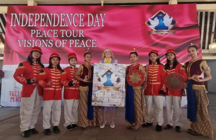“It is important to encourage the Indonesian youth, the vanguard of the future, to embrace the Indonesian national motto, “Bhinneka Tunggal Ika” and express themselves so that others will learn. Through their artistic presentations of a vision for a peaceful tomorrow they help themselves and their peers to develop a more tolerant state of mind and respect for each other. Every participant in the Visions of Peace Initiative becomes an ambassador for peace as they bring their vision for a peaceful and tolerant future into their homes, schools, and community,” said Princess Cheryl Halpern, the international founder of Visions of Peace Initiative.