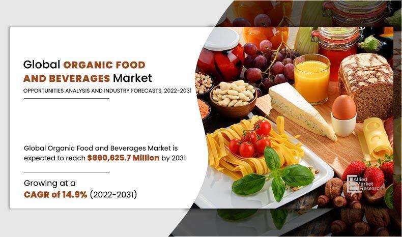 PORTLAND, OR, UNITED STATES, August 9, 2023/EINPresswire.com/ -- According to a new report published by Allied Market Research, titled, “Organic Food and Beverages Market by Product Type, Process, and Distribution Channel: Global Opportunity Analysis and Industry Forecast, 2022–2031,” the global organic food and beverages market size is expected to reach $860.625.7 million by 2031 at a CAGR of 14.9% from 2022 to 2031.