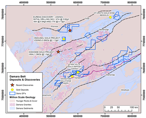 Figure 1: The Damara Belt in Namibia: Existing Gold Deposits and New Discoveries