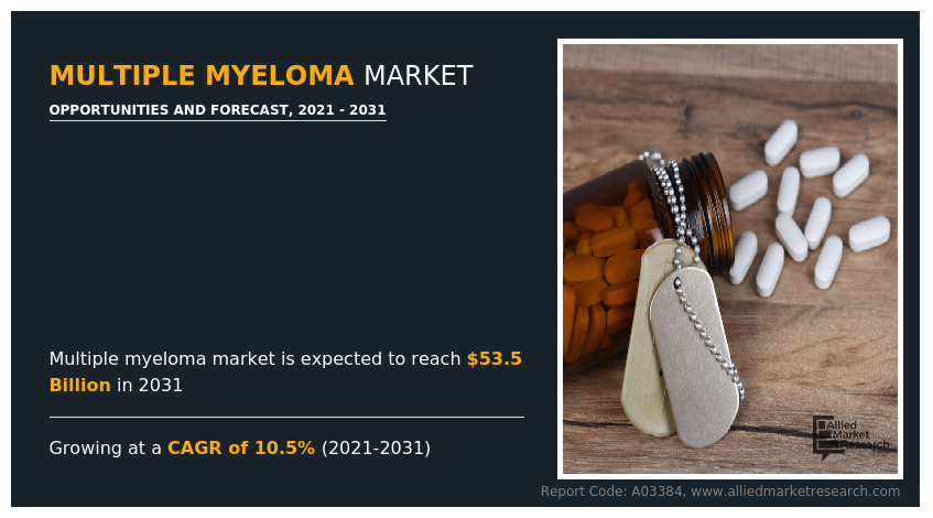 PORTLAND, OREGON, UNITED STATES, August 10, 2023/EINPresswire.com/ -- The multiple myeloma market size was valued at $19,666.74 million in 2021, and is projected to reach $53,521.76 million by 2031, registering a CAGR of 10.5% from 2022 to 2031.
