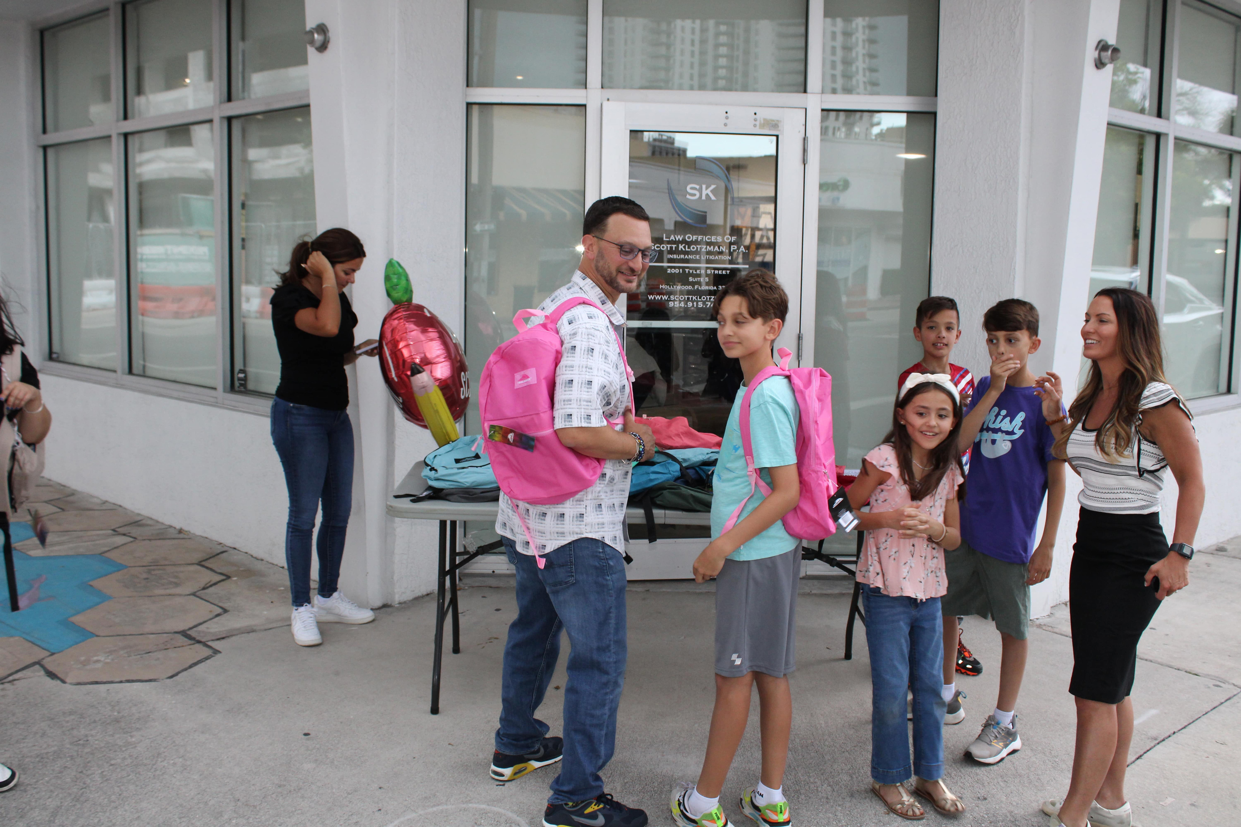 The Klotzman Law Firm completed their 4th annual backpack giveaway for Hollywood students.