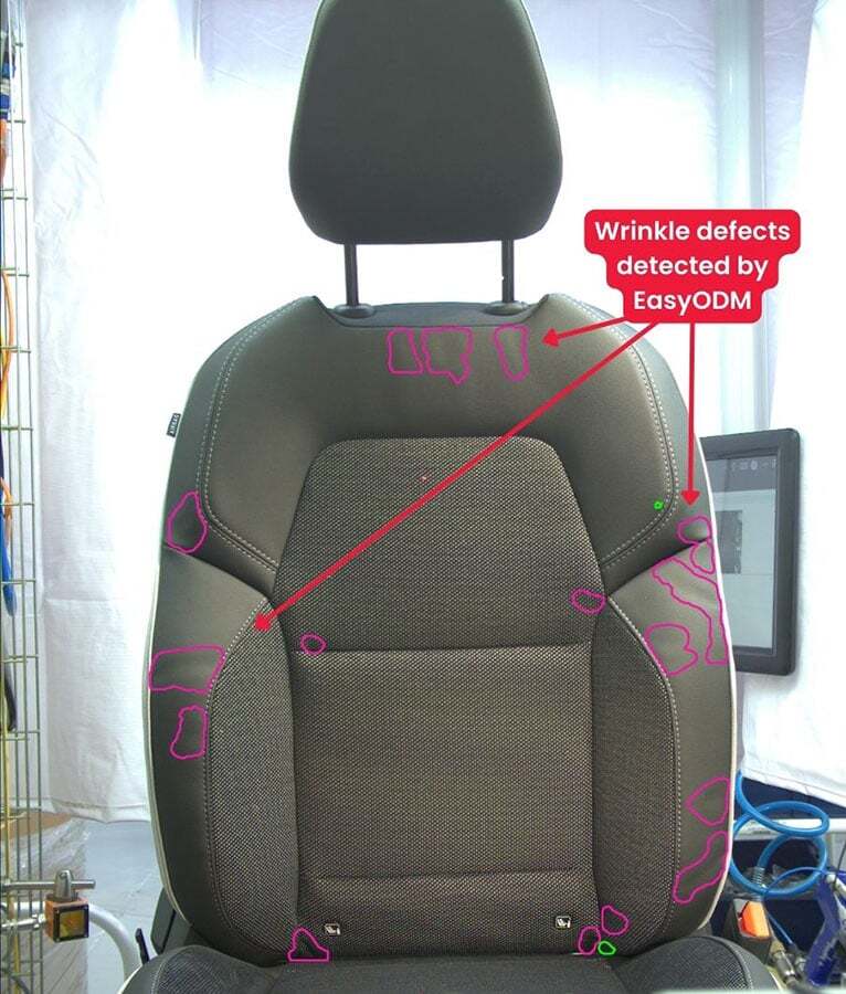 EasyODM was developed to accommodate a diverse product portfolio and often imperfect manufacturing environment. At first the software identifies the seat in the image and isolates it from the background noise. Then - pixel by pixel - the software scans segments of the seat for defects, highlighting the affected regions in the image. The highlighted defects can then be forwarded for automated removal. After the elimination of defects, the software performs an additional quality check.