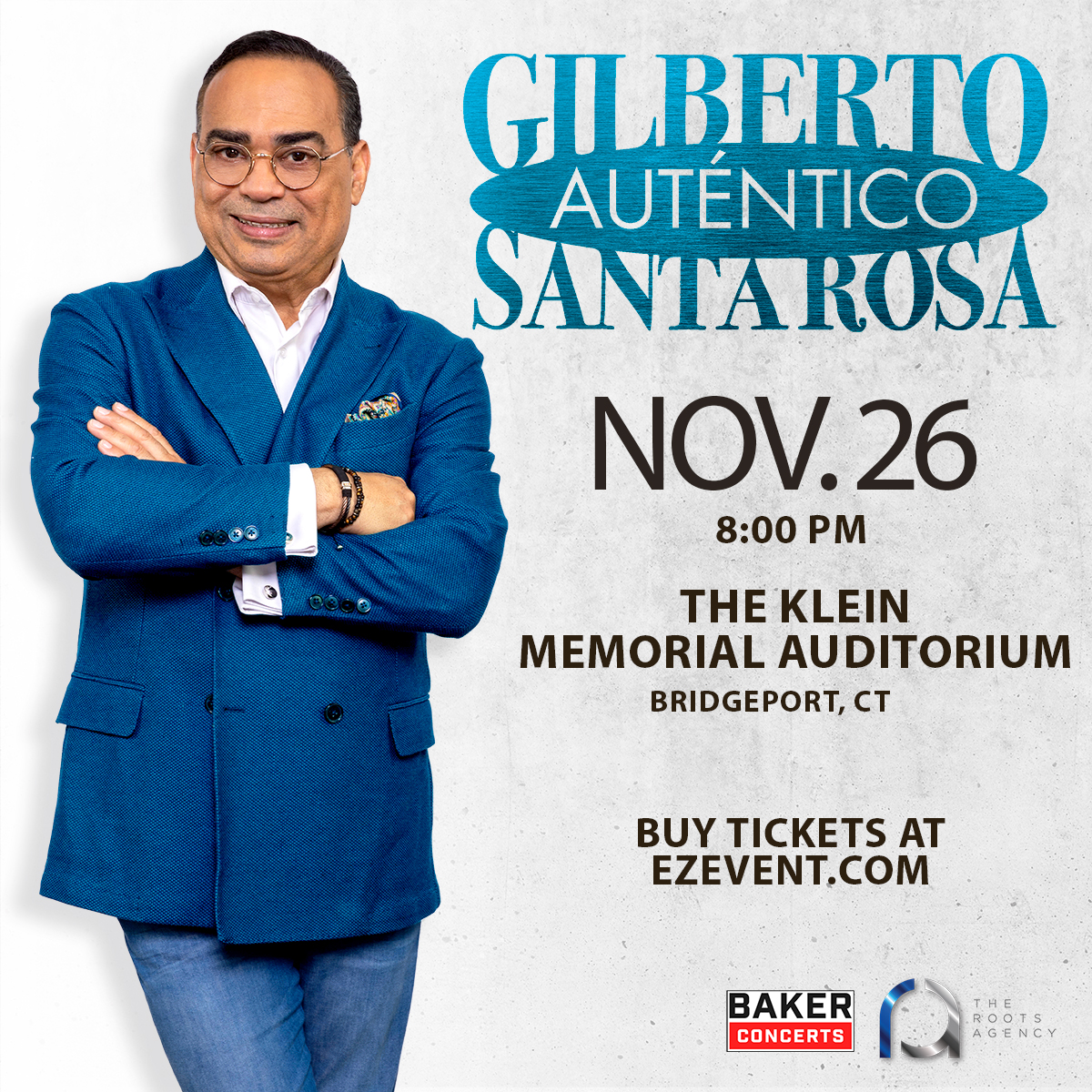 BRIDGEPORT, CT, US, August 21, 2023/EINPresswire.com/ -- Baker Concerts is excited to announce that Latin music superstar Gilberto Santa Rosa will be performing on November 26th at The Klein Memorial Auditorium. Santa Rosa has been entertaining audiences around the world for over four decades and is known for his musical elegance and style. The show promises to be an unforgettable experience for all Salsa music lovers.With six GRAMMY Awards and the 2021 Latin GRAMMY Lifetime Culture Achievement Award, Santa Rosa's accomplishments in the recording industry are unparalleled. His record sales history includes multiple Gold, Platinum, and Multi-Platinum album certifications, and he holds the Guinness World Record for the most #1 hits on Billboard's Tropical Albums chart with an astounding 14.