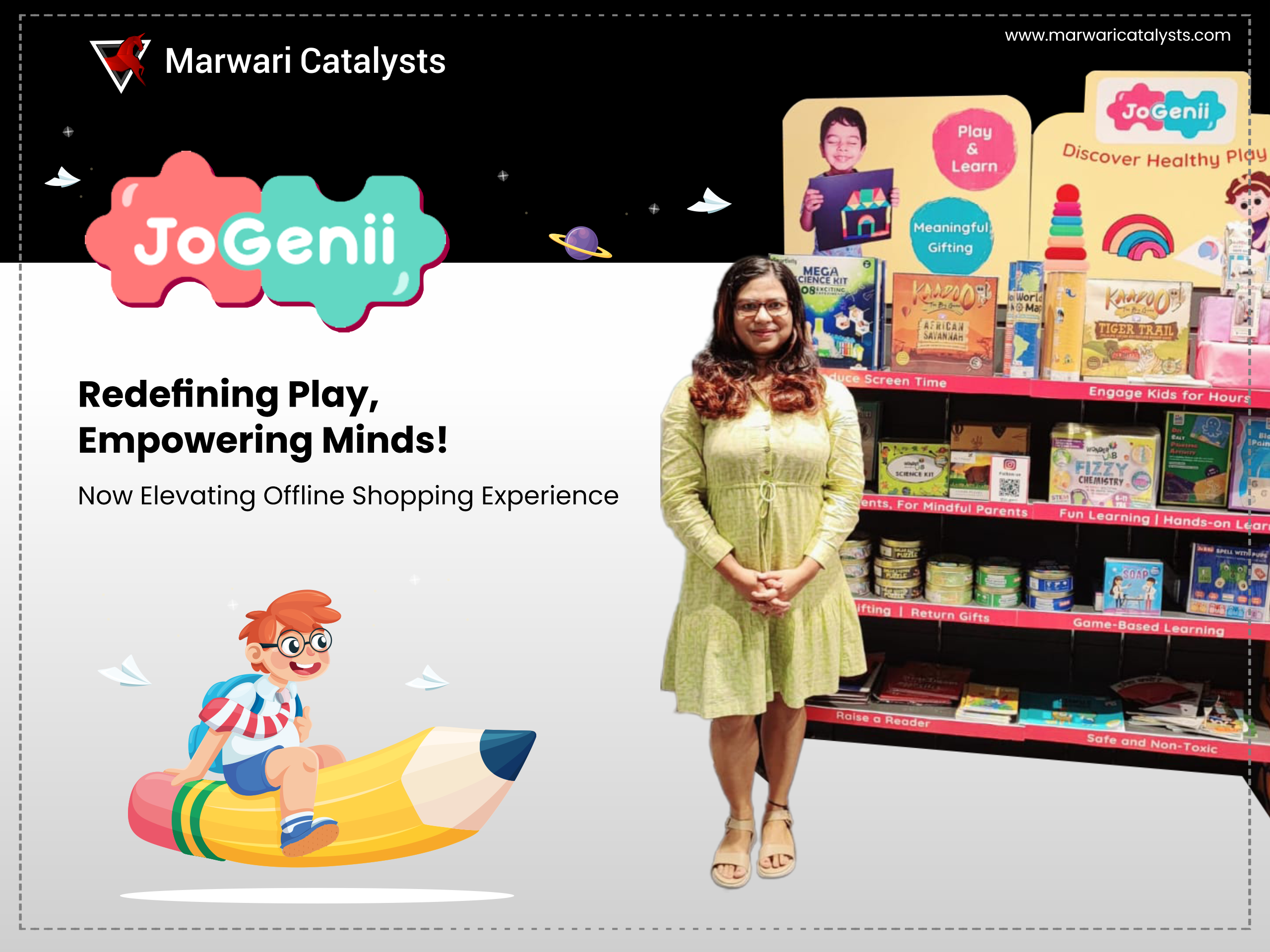 "We are excited to have the support of Marwari Catalysts, STPI, and HNI individuals as we continue to grow JoGenii. Their backing will help us scale JoGenii to become the leading online marketplace for educational toys, games, and books in India," said Purba Mazumdar, Founder and CEO of JoGenii. "While premium-priced international brands and budget-friendly yet low-quality options exist, we saw an opportunity to cater to parents who seek unique, engaging, safe and affordable options for their children. JoGenii fills this market gap by providing a wide range of educational toys, games, and books that combine learning with fun."