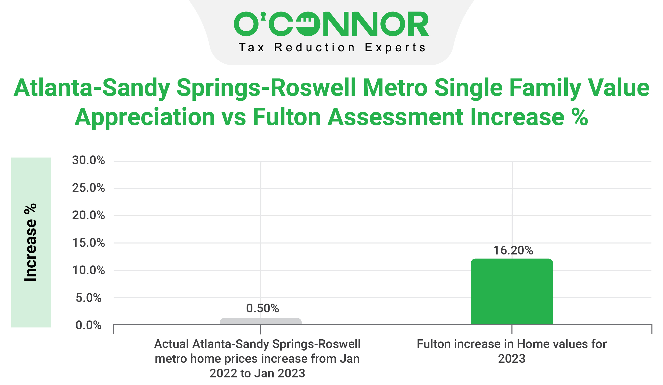 ATLANTA, GEORGIA, UNITED STATES, August 24, 2023/EINPresswire.com/ -- The findings of the O’Connor ratio research on the median time-adjusted sales price for an average homeowner in Fulton County, Georgia is $363,000, but the median assessed value is $368,500, thus being $5,500 higher than the market price. As a result, much residential real estate in Fulton County is overpriced. The research investigation analyzes the time-adjusted sales price to the value allocated by the Fulton County tax assessor for 2023.The market value of an average residence in Fulton County has gone up by 16.2%, but residences under $250K have suffered the most, spiking by 19.9%. Homes valued above $1.5 million are also seeing a likely unwelcome boost in the form of 18.7% higher appraisals for 2023.