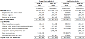 The Company has included certain terms or performance measures that are not defined under IFRS in this document, including EBITDA and adjusted EBITDA. Non-IFRS financial performance measures do not have any standardized meaning prescribed under IFRS, and therefore, they may not be comparable to similar measures employed by other companies. The data presented is intended to provide additional information and should not be considered in isolation or as a substitute for measures prepared in accordance with IFRS and should be read in conjunction with the Company’s financial statements