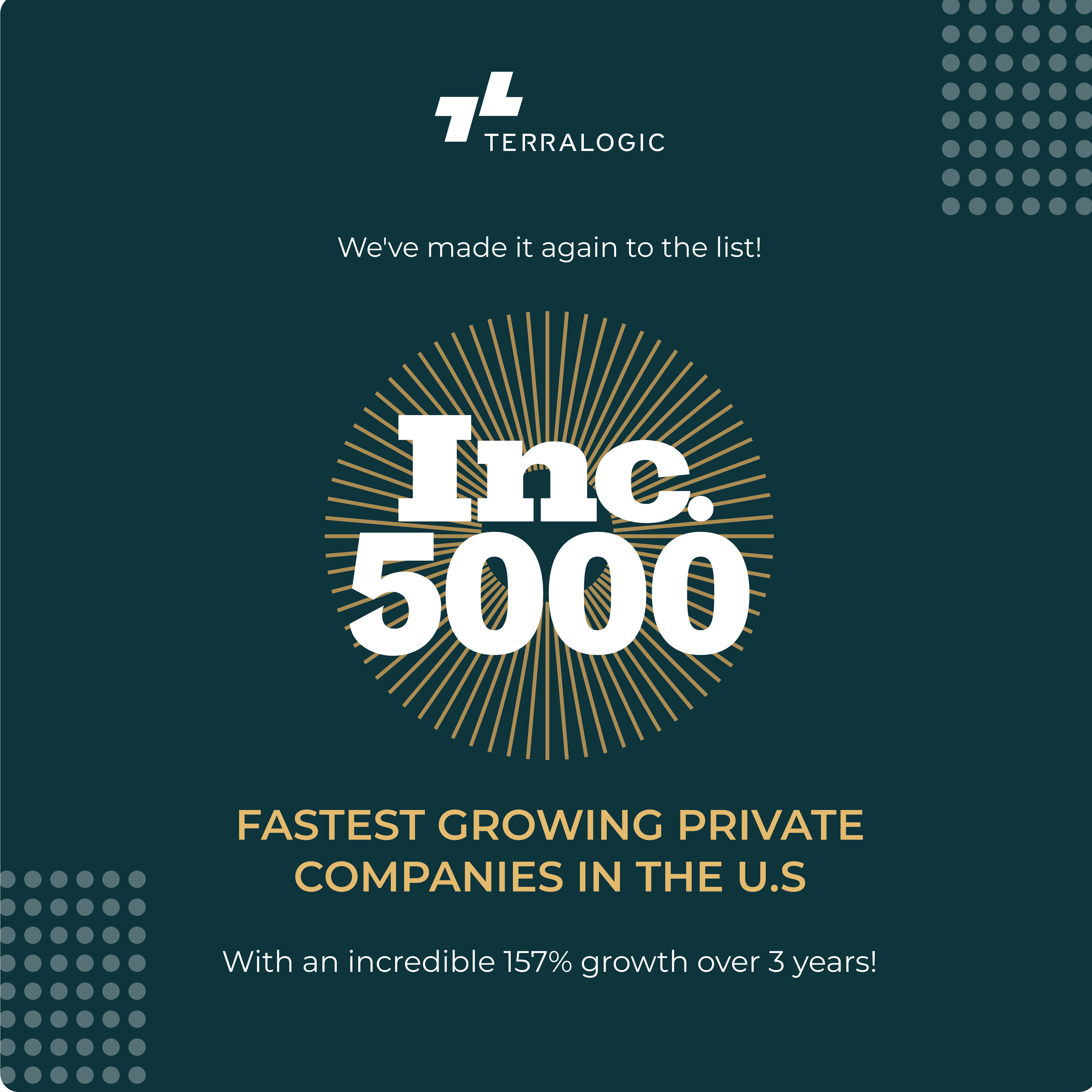 Terralogic recognized in the Inc. 5000 Honorees list, ranks among the top 0.07% of rapidly growing American companies.
