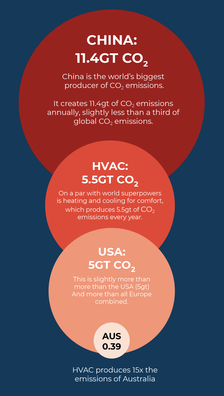 • The temperature and humidity controls in our homes and commercial buildings produce 5,500,000,000 tonnes of CO2 every year.