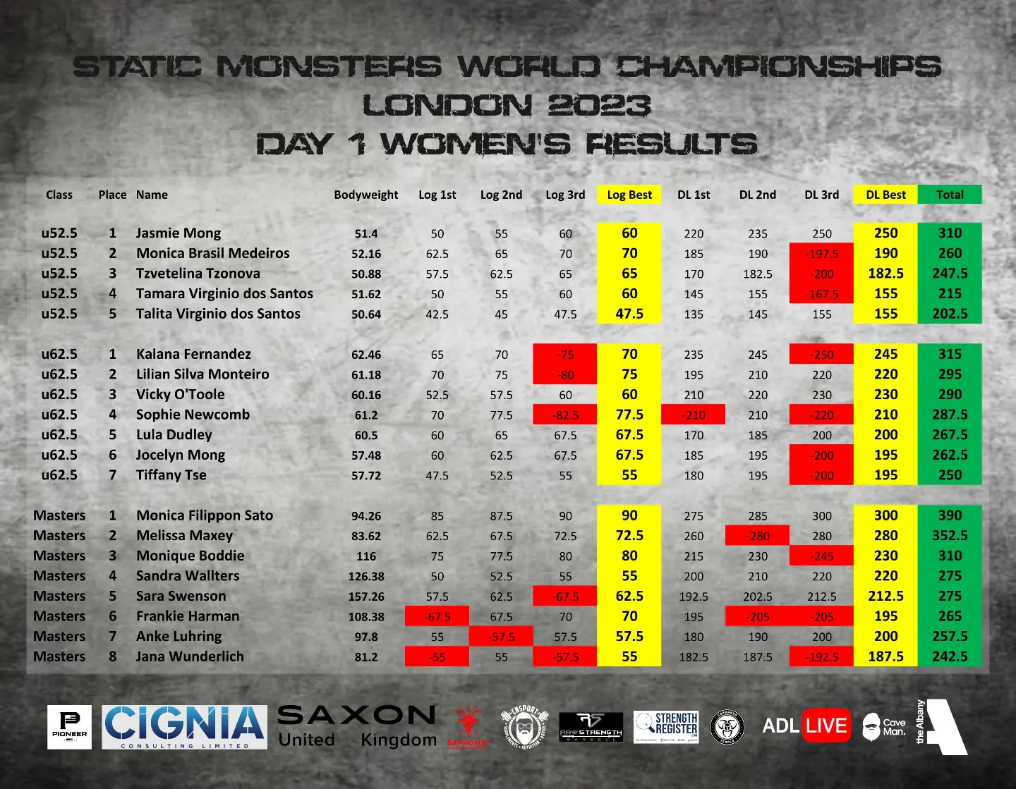 In the first event, the Log Press, Kalana De Senna Ferandes strode confidently into the arena and effortlessly lifted 65 kg in her first attempt and 70 kg in her second, leaving her in third place. Lilian Silva Monteiro from Brazil lifted 75kg putting her in second and Sophie Newcomb from the UK lifted an astonishing 77.5kg to secure first place.